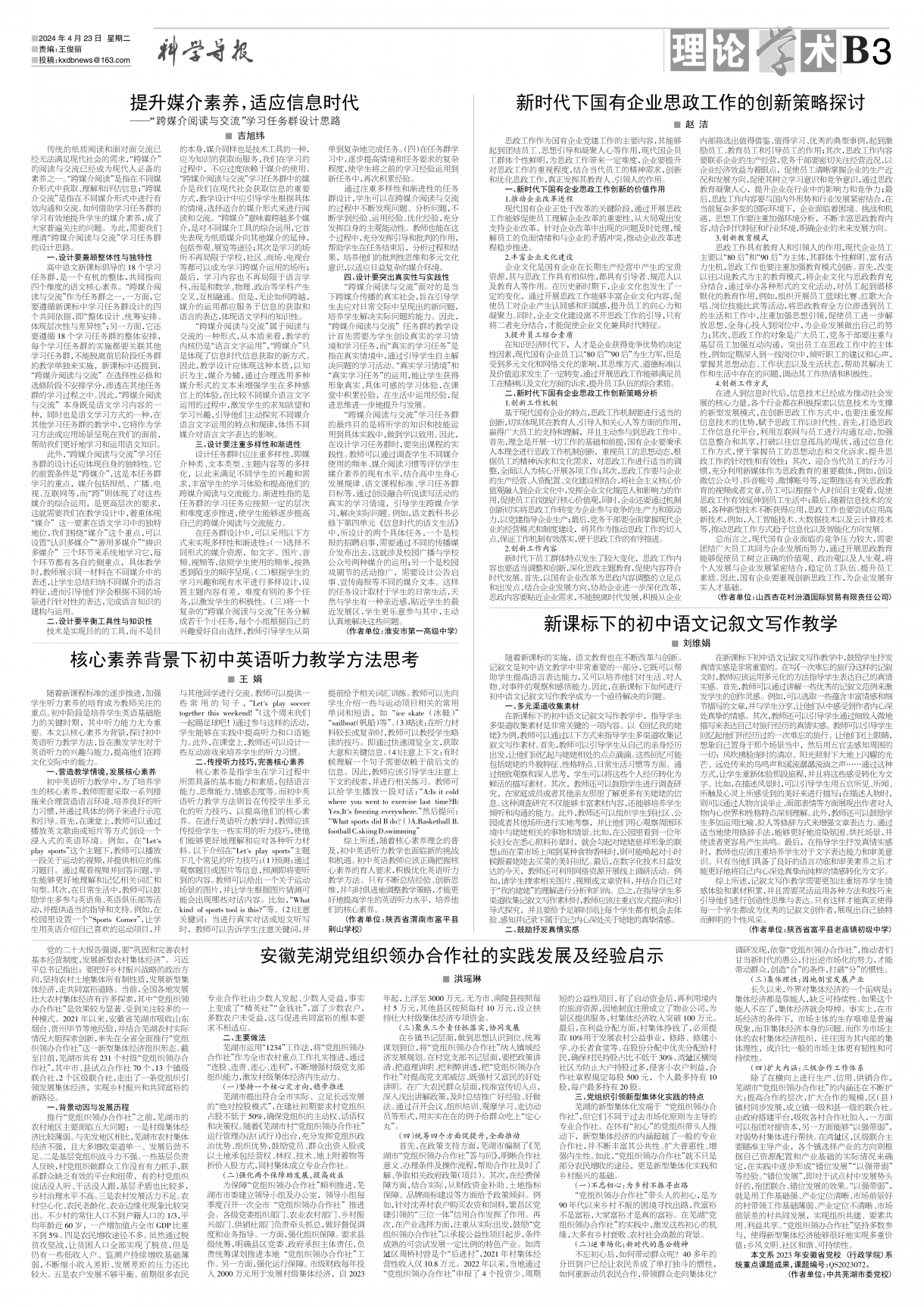 《科学导报》2024年4月23日版面速览-ag官网